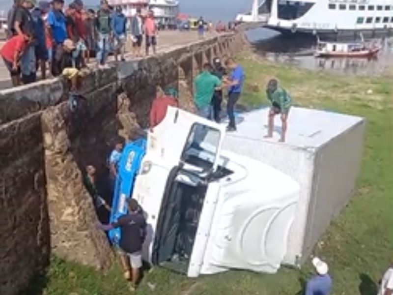 Um caminhão baú tombou na manhã desta quarta-feira (3) na área conhecida como Língua da Princesa, no Centro de Maués, interior do Amazonas, não houve feridos, o motorista, que permaneceu consciente, foi socorrido e encaminhado ao Hospital Geral de Maués para exames.