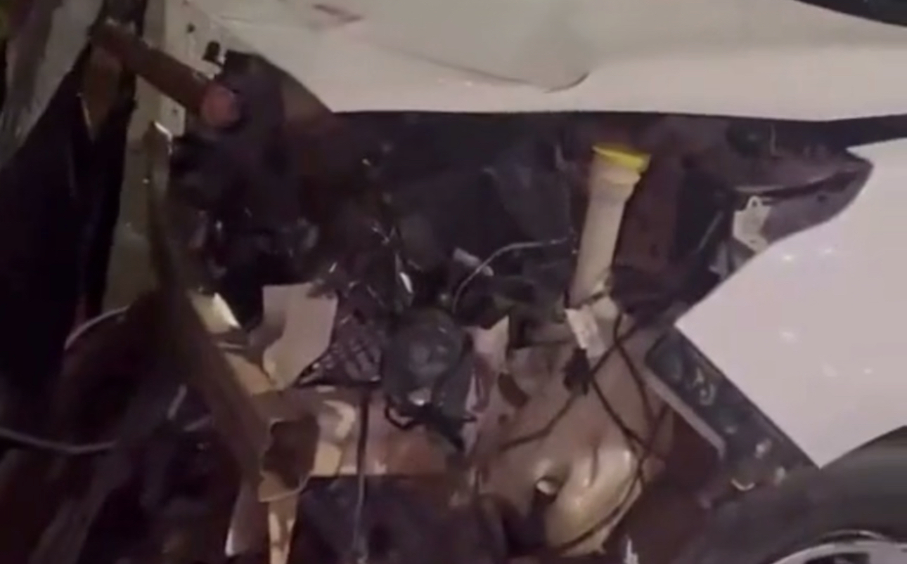 Imagens de câmeras de segurança registraram o momento em que o veículo perdeu o controle e se chocou violentamente contra uma mureta. O impacto foi de tamanha intensidade que a parte dianteira do carro ficou completamente destruída, com as laterais também amassadas.