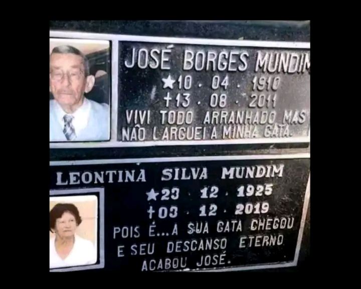 Um manda uma mensagem para o outro, depois de falecidos!Trata-se do casal, José Borges Mundim, falecido em 2011, aos 101 anos de idade, e sua esposa, Leontina Silva Mundim, falecida aos 93 anos em 2019. Seguindo o exemplo, outras sepulturas também começaram a colocar humor em suas últimas mensagens.