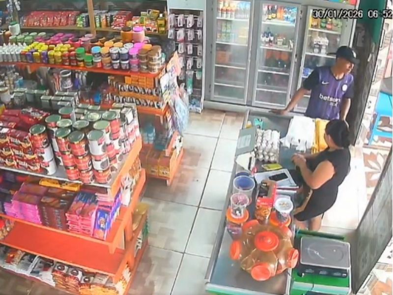 Um assalto ao Mercadinho Santo Expedito, em Maraã (AM), foi registrado por câmeras de segurança na manhã desta sexta-feira (30). As imagens mostram o suspeito fingindo ser um cliente e conversando com a funcionária enquanto observava o movimento. Na sequência, ele rendeu a atendente colocando uma faca em seu pescoço para anunciar o crime.
