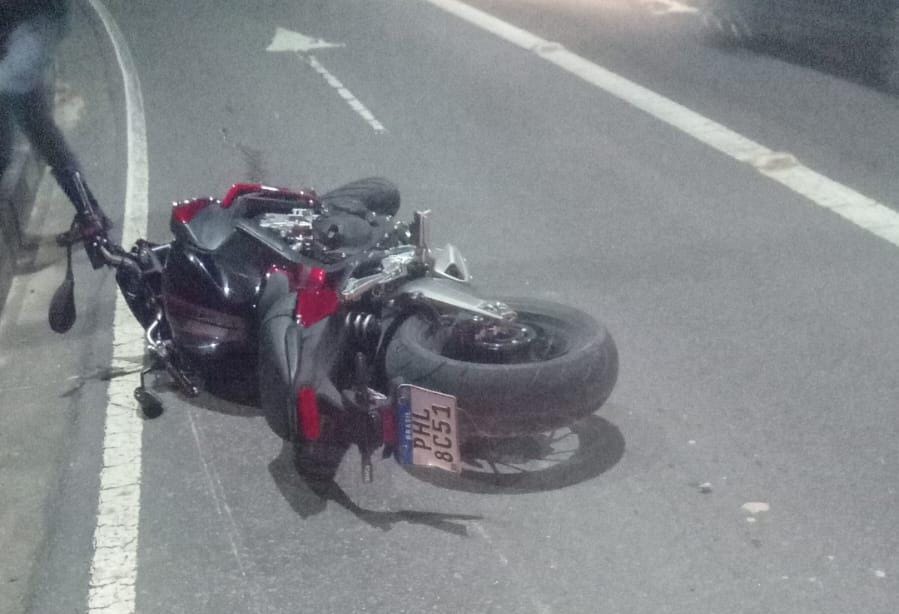 O condutor de uma Honda CG 650F perdeu o controle do veículo nas proximidades do conjunto Viver Melhor, colidindo contra a divisória da pista.