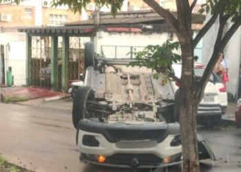 Na manhã deste domingo (1), um carro capotou após colidir com outro veículo na Avenida Airão, bairro Praça 14, zona...