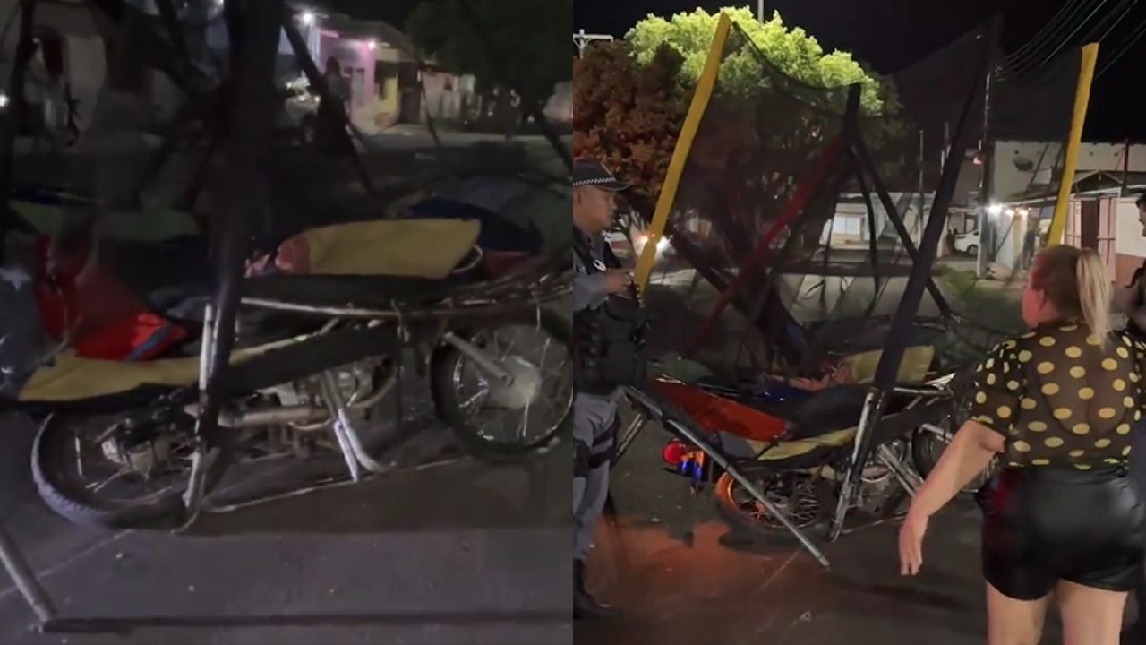 O acidente aconteceu na rua Álvaro França, bairro da Colônia. Segundo testemunhas, o local estava isolado com cones para o evento infantil, mas o motociclista, em alta velocidade, desrespeitou a interdição e colidiu violentamente contra o brinquedo, que foi totalmente destruído.