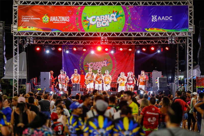 O Carnaboi 2026 ocorre nesta sexta-feira (20) e sábado (21) no Sambódromo de Manaus. O evento encerra a programação do Carnaval na Floresta e reúne artistas dos bumbás Caprichoso e Garantido. Nesta sexta o tema é “Boi Bumbá, Brinquedo de São João”. Os shows começam às 19h com os bois Tira Prosa e Corre Campo, grupos folclóricos de Manaus. Na sequência se apresentam os grupos A Toada, Kamayurá e os cantores Itamar Benarrós, Gean Figueira, Adriano Aguiar, Vanessa Alfaia, Márcia Novo, Helen Verás, Fabiano Neves, Klinger Jr., David Assayag e Erick Juan.