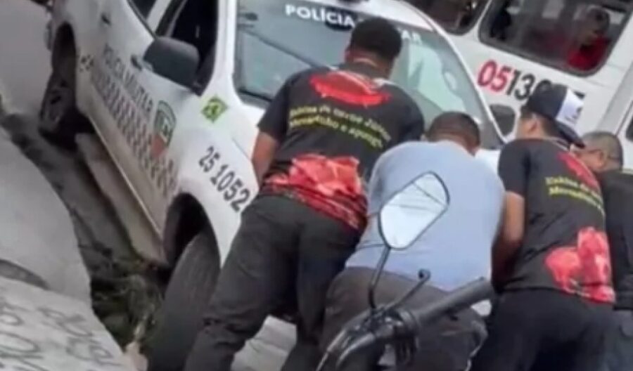 Uma viatura da PM caiu em uma cratera na rua Prosperidade, no bairro Compensa II. A ocorrência chamou a atenção de moradores da área e ganhou repercussão, após a circulação de um vídeo nas redes sociais.