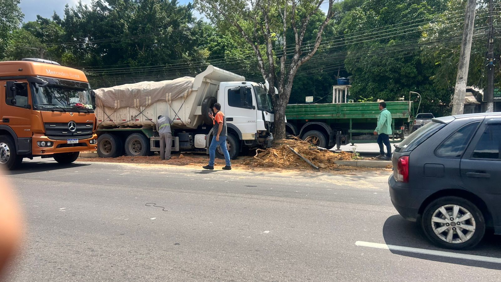 Um caminhão de cor branca e uma caminhonete, após um acidente, interditaram parcialmente a Avenida do Turismo, no bairro Tarumã, zona oeste de Manaus, na manhã desta segunda-feira (27). A colisão ocorreu quando o caminhão atingiu a traseira da caminhonete, que sofreu perda total devido à intensidade do impacto, ambos os veículos pararam no canteiro central da avenida.