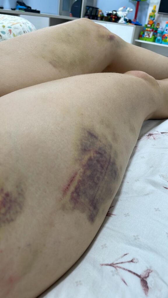 As marcas da violência foram registradas em fotos e entregues à polícia, mostrando hematomas e ferimentos na cabeça, boca e outras partes do corpo, além das lesões no filho. A Delegacia Especializada em Crimes Contra a Mulher (DECCM) investiga o caso e deverá ouvir o acusado nos próximos dias.