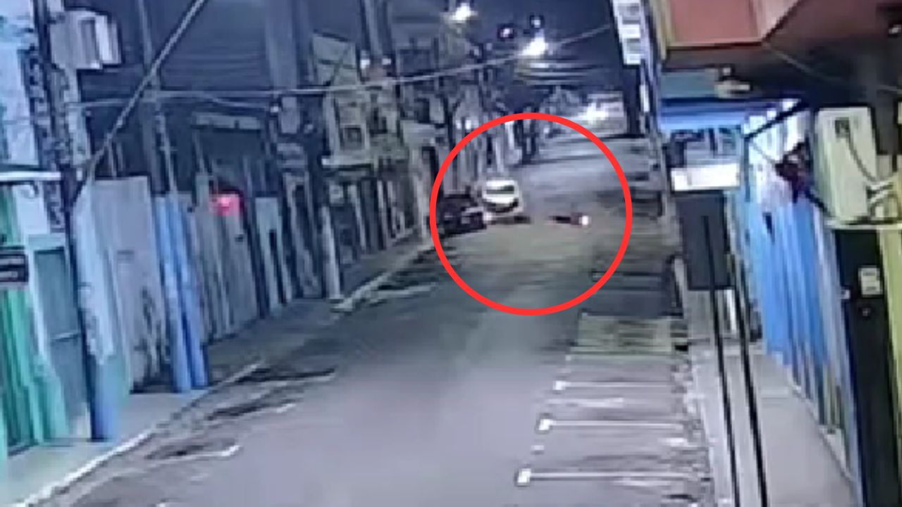 As imagens de câmeras de segurança registraram o momento em que o vigilante Ney da Silva Moura, 47 anos, é atingido por uma caminhonete Strada no cruzamento das ruas Joaquim Sarmento e Saldanha Marinho, no Centro de Manaus, durante a madrugada desta quarta-feira (10).