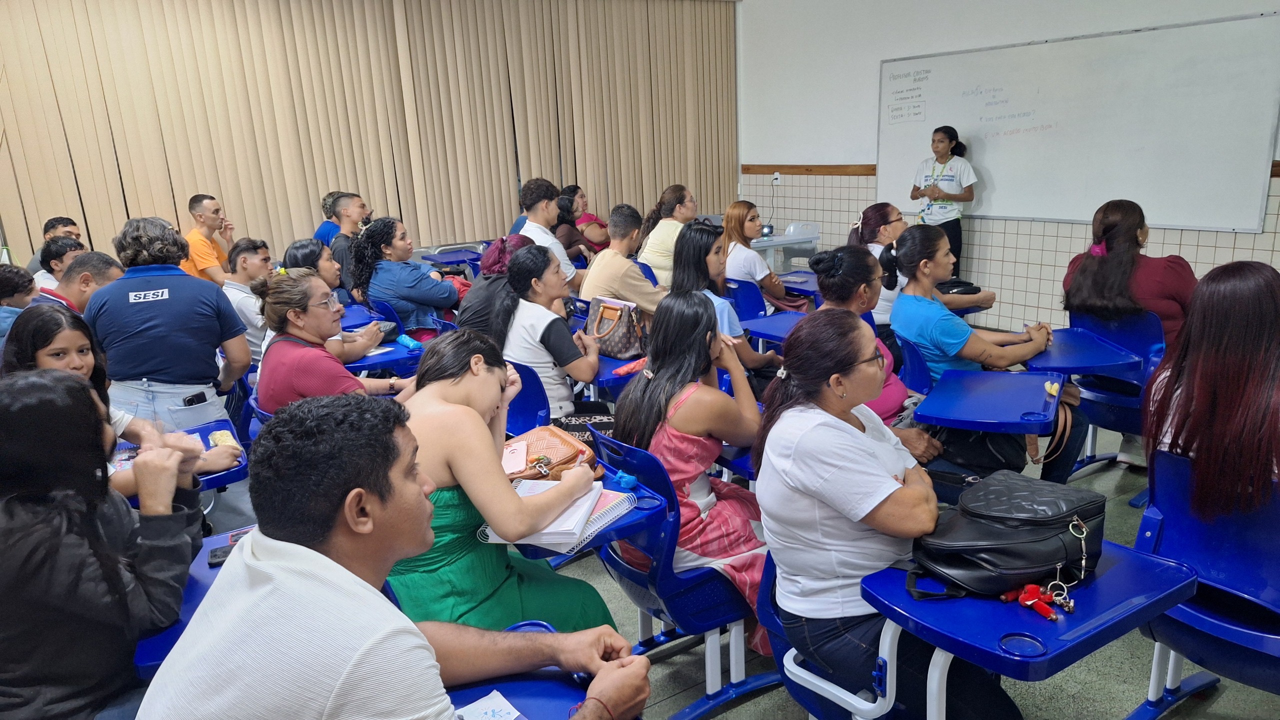 Além da formação educacional, os alunos da Nova EJA SESI também têm acesso a uma série de benefícios institucionais. Durante a recepção das turmas, a equipe do SESI apresentou os serviços disponíveis aos estudantes, como a carteirinha do SESI, que garante descontos em atendimentos de saúde, serviços odontológicos e acesso às atividades do SESI Clube do Trabalhador, incluindo modalidades esportivas e lazer nos fins de semana.