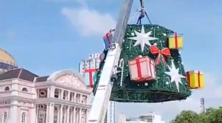 O operador de guindaste que pulou da cabine para se salvar durante o tombamento da máquina na montagem da árvore de Natal de 2025, no Largo São Sebastião, em Manaus, estava afastado pelo Instituto Nacional do Seguro Social (INSS) e recebia auxílio-doença. Ele foi preso logo após o ocorrido. A informação foi confirmada pelo delegado Marcelo Martins, do 24º Distrito Integrado de Polícia (DIP), responsável pela investigação.