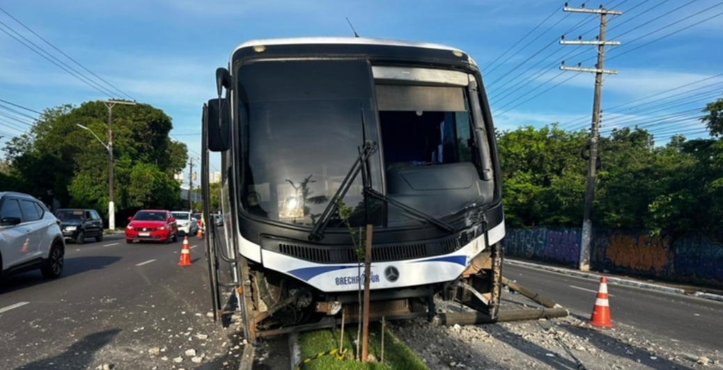 Ônibus de rota invade canteiro e atinge poste na Av.Coronel Teixeira