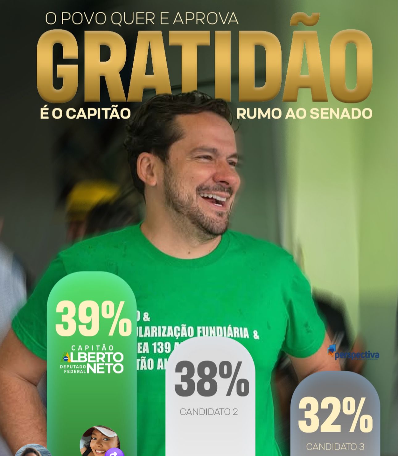 Uma nova pesquisa de intenção de voto divulgada nas redes sociais pelo deputado federal Capitão Alberto Neto (PL) indica seu nome à frente na disputa por uma vaga no Senado pelo Amazonas. De acordo com os dados apresentados na postagem, o parlamentar aparece com 39% das intenções de voto, superando outros dois concorrentes, que registram 38% e 32%, respectivamente.