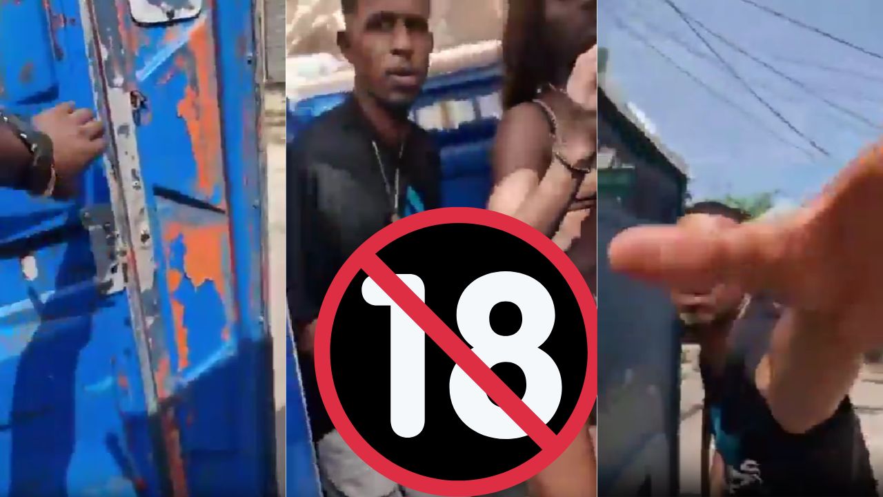 Um vídeo que circula nas redes sociais mostra um jovem sendo flagrado com uma trans dentro de um banheiro químico após um baile funk no Rio de Janeiro.