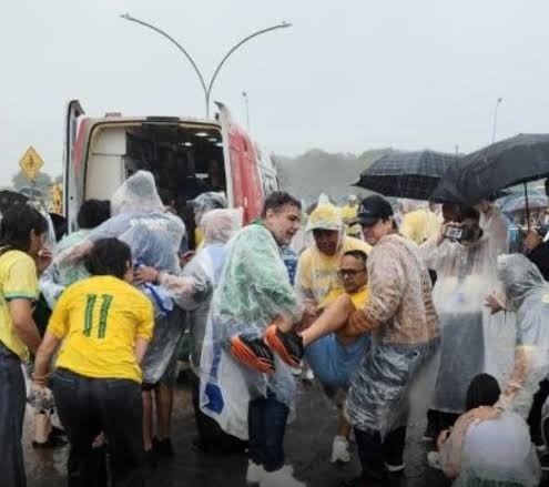 A ocorrência mobilizou equipes do Corpo de Bombeiros do Distrito Federal e levou à interrupção parcial da concentração no local. As informações foram divulgadas inicialmente em relatos jornalísticos e confirmadas pelo Corpo de Bombeiros, que atendeu apoiadores atingidos pela descarga elétrica durante a forte chuva que caía sobre a região no momento do incidente.