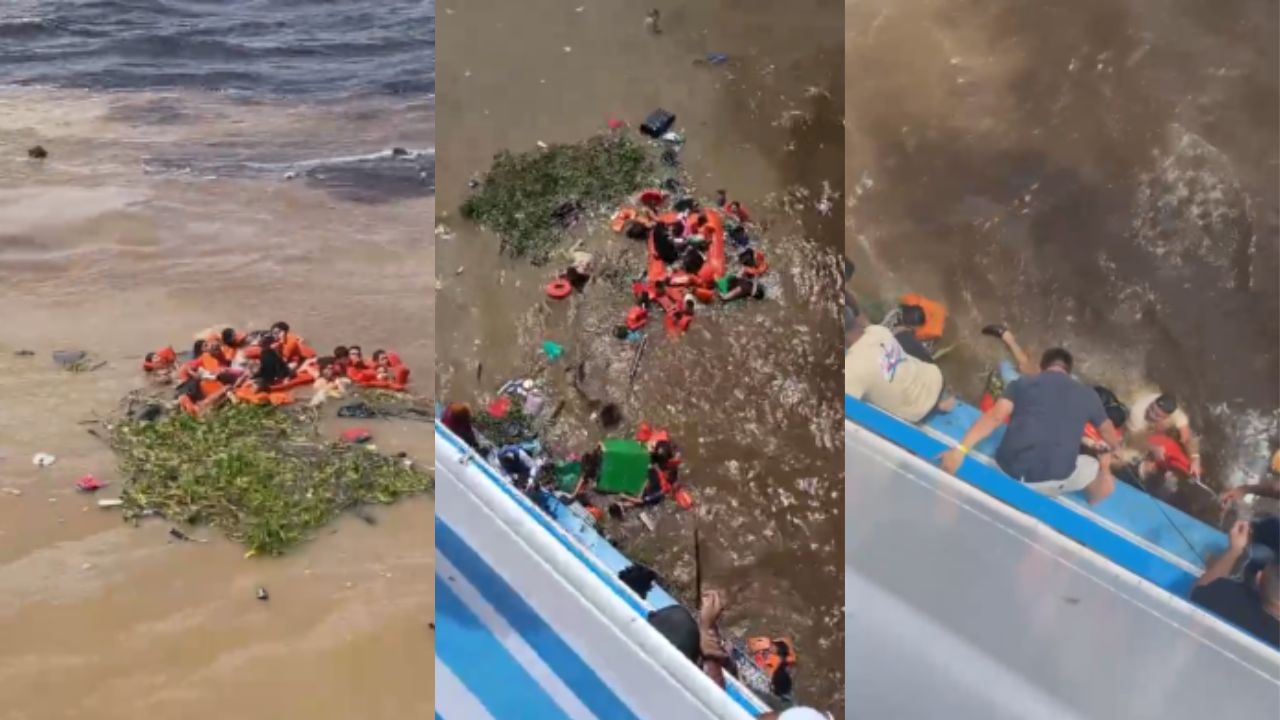 Testemunhas relataram que o naufrágio ocorreu de forma rápida e que havia várias pessoas a bordo, inclusive crianças. Nas imagens, grupos aparecem reunidos para se manter próximos enquanto aguardavam socorro, todos utilizando coletes salva-vidas, o que contribuiu para que permanecessem flutuando.
