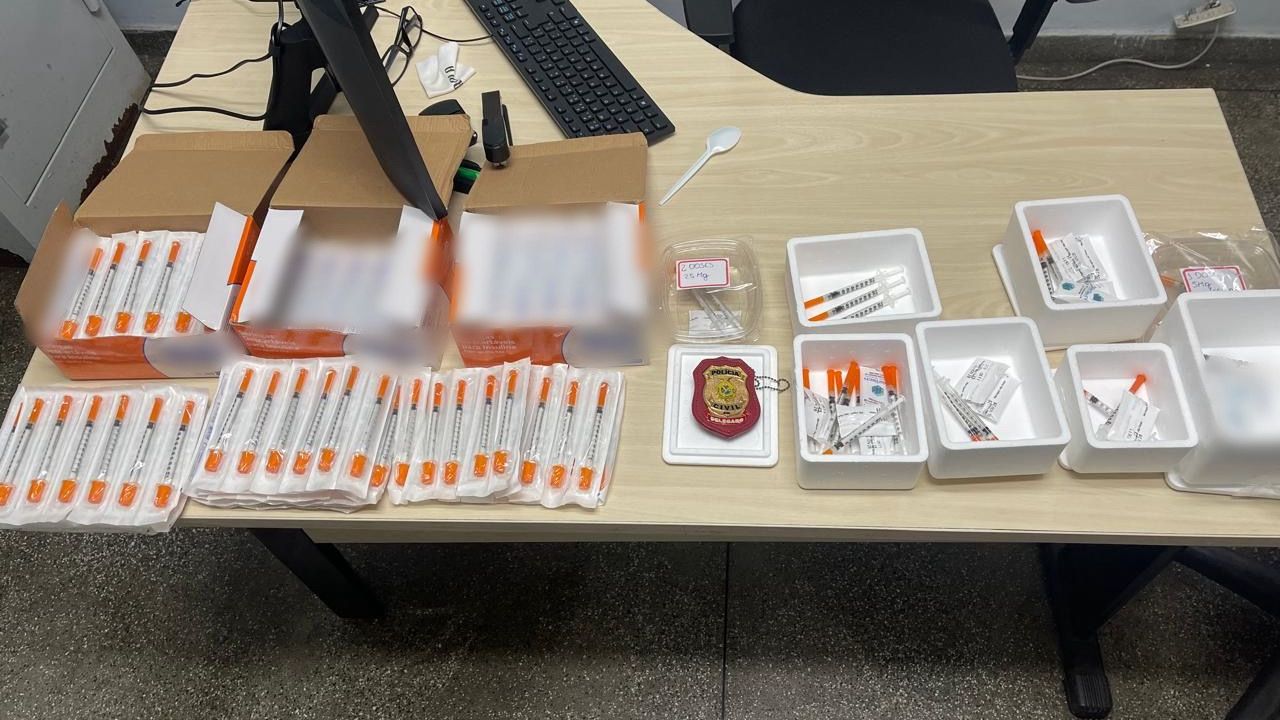Mandados de busca e apreensão e de prisão temporária foram cumpridos em endereços no bairro Novo Israel, zona Norte, onde foram encontrados medicamentos, materiais para aplicações injetáveis, documentos e equipamentos eletrônicos, que serão submetidos à perícia técnica.