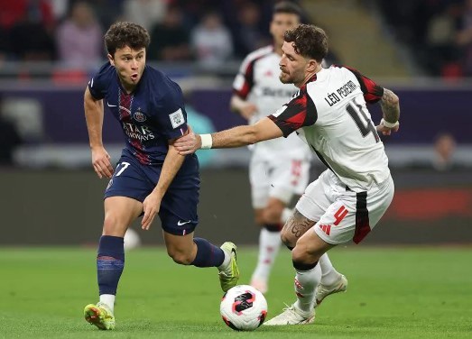 Aos 38 minutos, Kvaratskhelia abre o placar para o PSG contra o Flamengo. Mayulu fez boa jogada pela direita e acionou Doué. O atacante tocou para dentro da área, Rossi falhou e ajeitou sem querer para o atacante do time francês. O georgiano tocou para o gol vazio e balançou as redes.