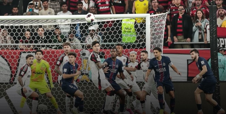 O PSG abriu o placar aos 38 minutos do primeiro tempo, com Kvaratskhelia. O time francês controlava a posse de bola e administrava o jogo até que Doué tocou para dentro da área, Rossi falhou e o georgiano marcou. O Flamengo começou com a bola e mostrou que não vai esperar o time do PSG. Logo nos primeiros minutos, o clube carioca teve a oportunidade de colocar na área em cobrança de falta. Entretanto, a chance não levou perigo ao goleiro Safonov.Com quase quatro minutos, João Neves assustou a torcida do Flamengo. Após cruzamento da direita, o volante português chegou sozinho por trás da zaga e tocou de primeira, mas acertou a rede pelo lado de fora.
