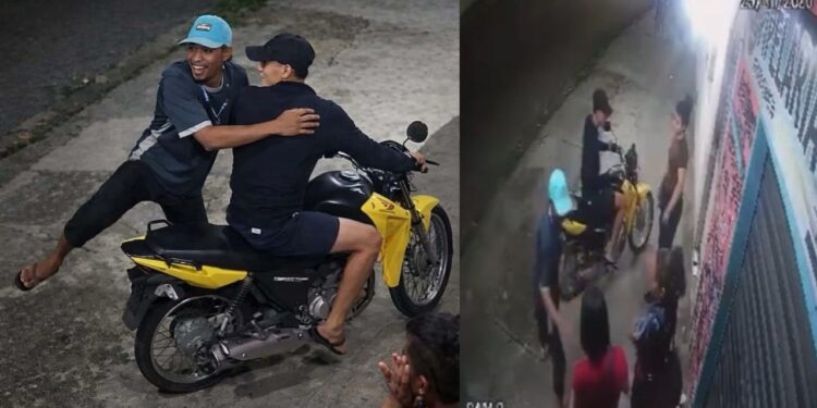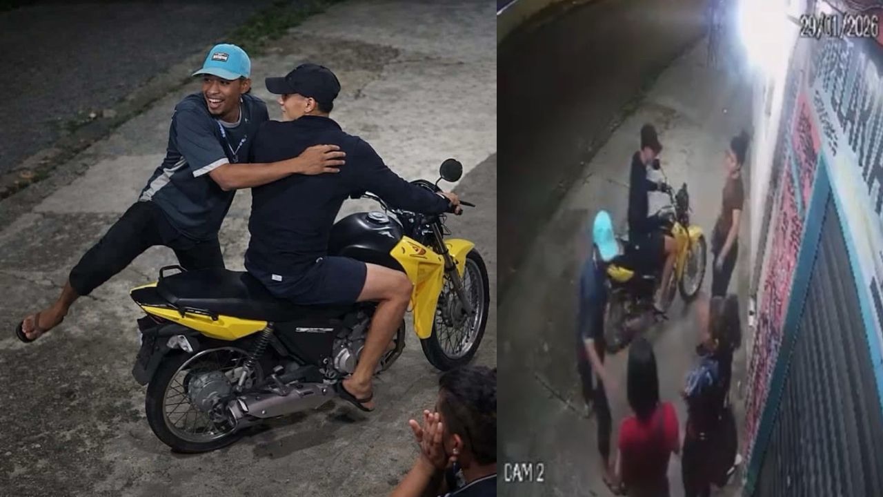 Câmeras de segurança de um estabelecimento próximo flagraram a movimentação dos suspeitos. As imagens mostram dois homens chegando em uma motocicleta, subindo na calçada e, em seguida, um deles descendo do veículo armado para render as vítimas. Sob ameaça, as mulheres entregaram seus aparelhos celulares.