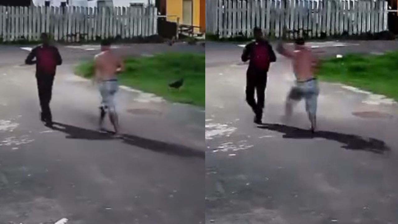 Um vídeo de câmera de segurança que circula nas redes sociais desde terça-feira (20) mostra o momento em que um homem armado aborda, ameaça e dá um tapa em um jovem na segunda-feira (19), em Itacoatiara, no interior do Amazonas. Nas imagens, o suspeito acusa a vítima de ter mexido com suas enteadas.