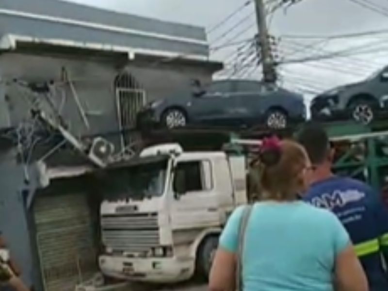 Vídeos feitos por moradores logo após a batida mostram a cena e os comentários de alerta. “Olha aí, rapaziada, o caminhão acabou de bater na casa aqui,” diz um morador, enquanto registra o veículo parcialmente preso à estrutura do imóvel.
