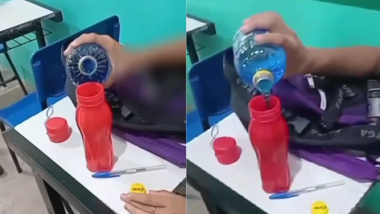 O corote aparece sendo colocado pelas estudantes dentro de garrafas de água para tentar disfarçar o consumo. A gravação teria sido feita por uma das próprias adolescentes.