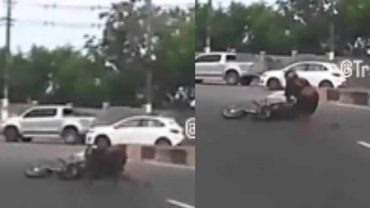 Apesar da gravidade do acidente, o condutor sofreu apenas escoriações leves e conseguiu se levantar logo após a queda, evitando ser atingido por outros veículos que trafegavam pelo local.