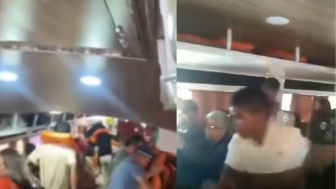 As ondas aumentaram rapidamente e a água invadiu a proa, provocando pânico entre os ocupantes. Crianças choraram, adultos pediram coletes e vídeos feitos a bordo mostraram a embarcação balançando forte enquanto a água alcançava a parte interna.